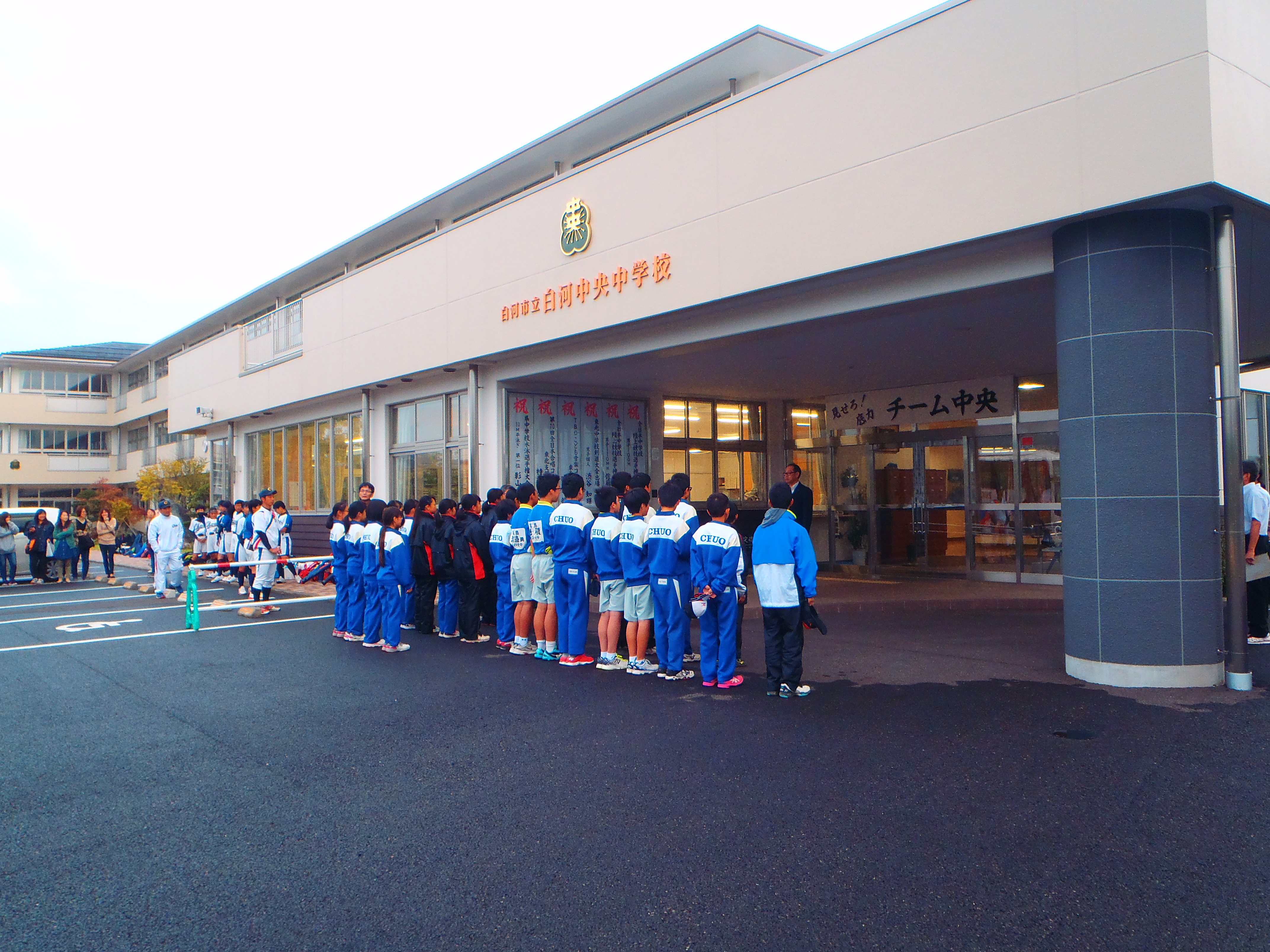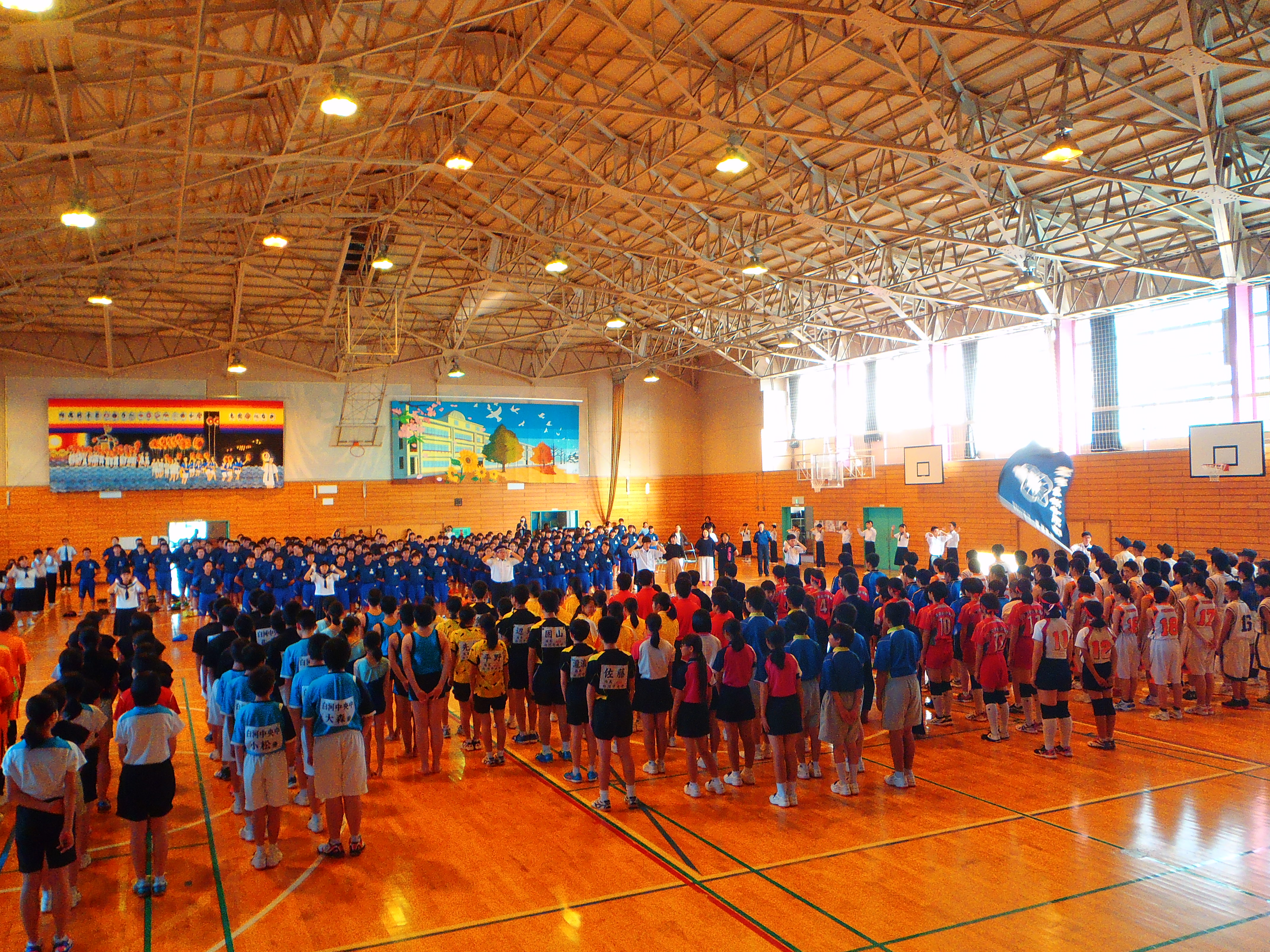 東西しらかわ中体連新人大会・駅伝大会の壮行会が行われました。