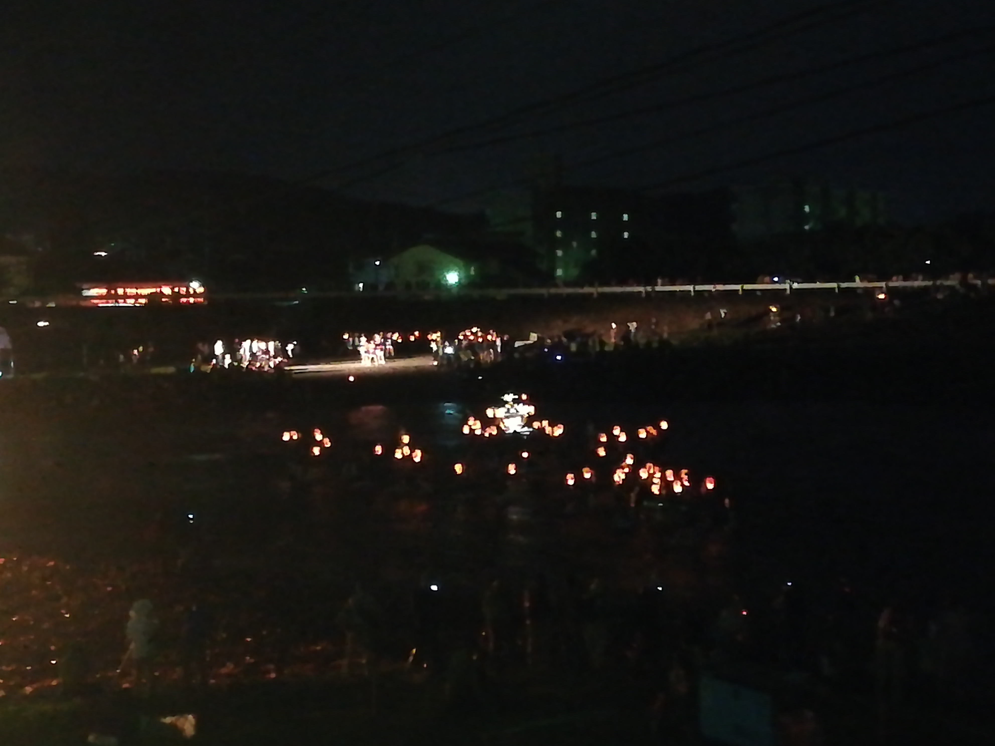 最終日、阿武隈川を渡る提灯。幻想的でした。