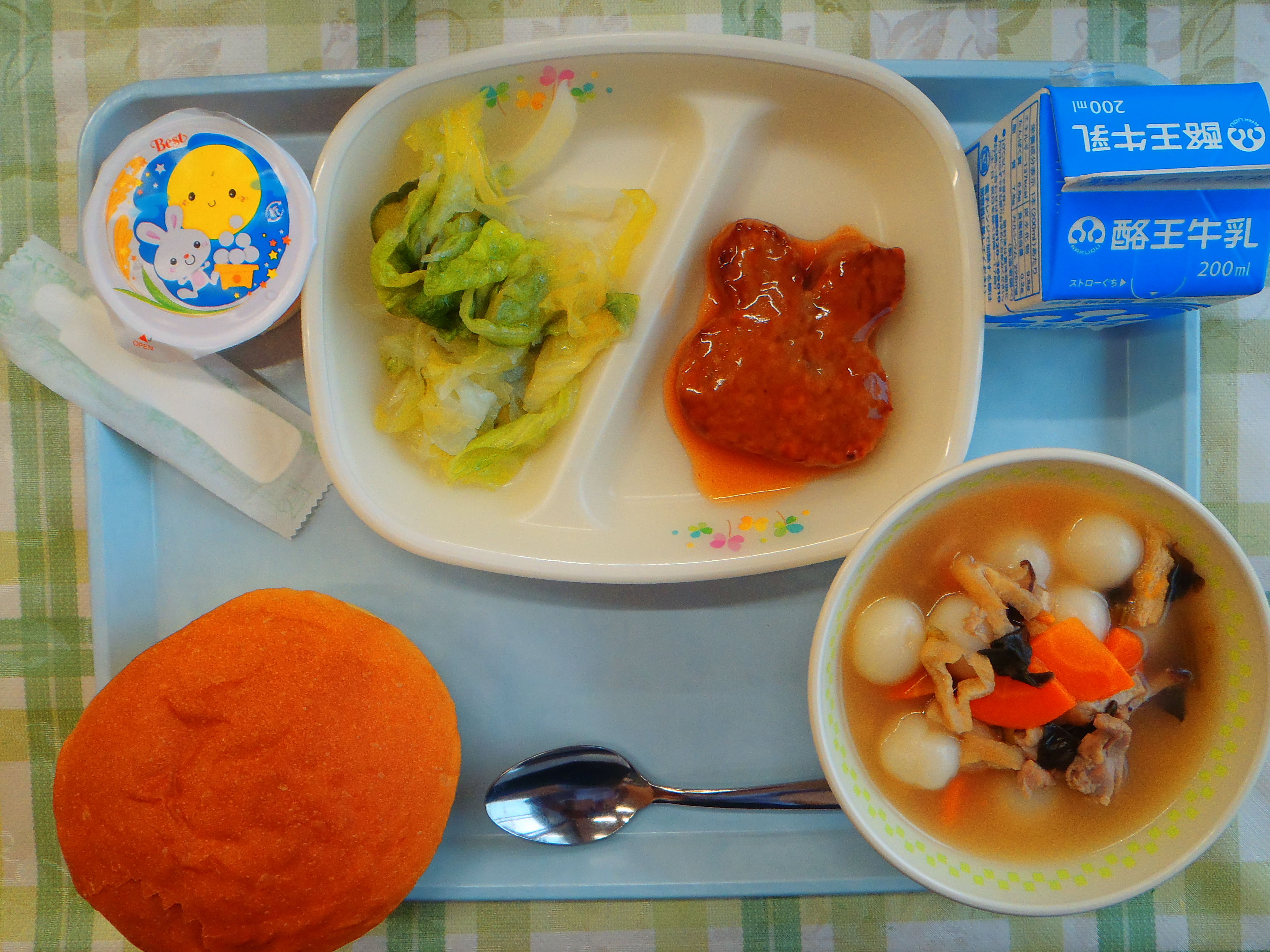 満月パン 白玉スープ 月見ハンバーグ フレンチサラダ 十五夜ゼリー 牛乳