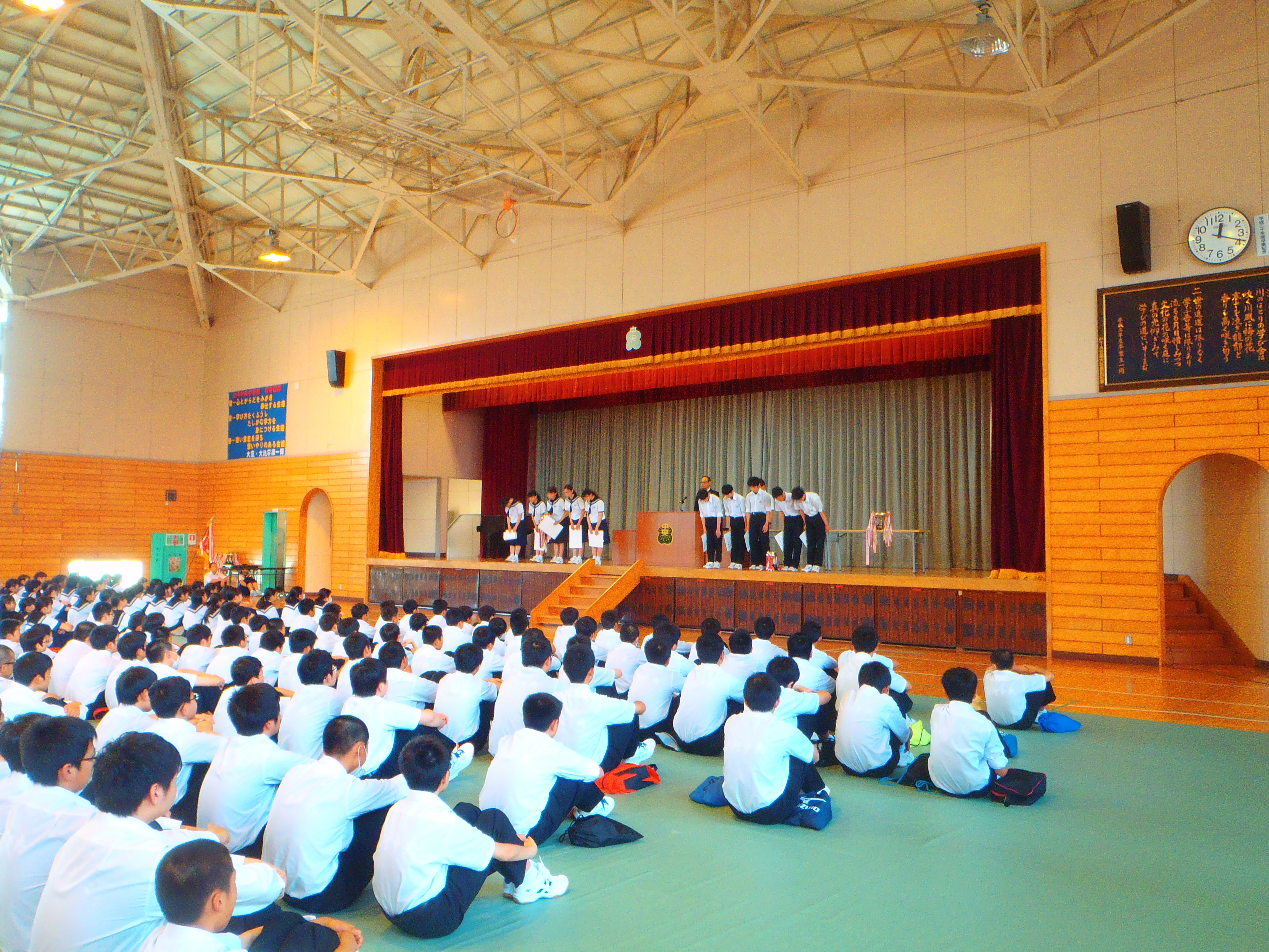 テスト後の4校時目には賞状伝達式がありました。各競技で中央旋風を巻きおこした栄光をたたえ、各部活動に賞状が授与されました。