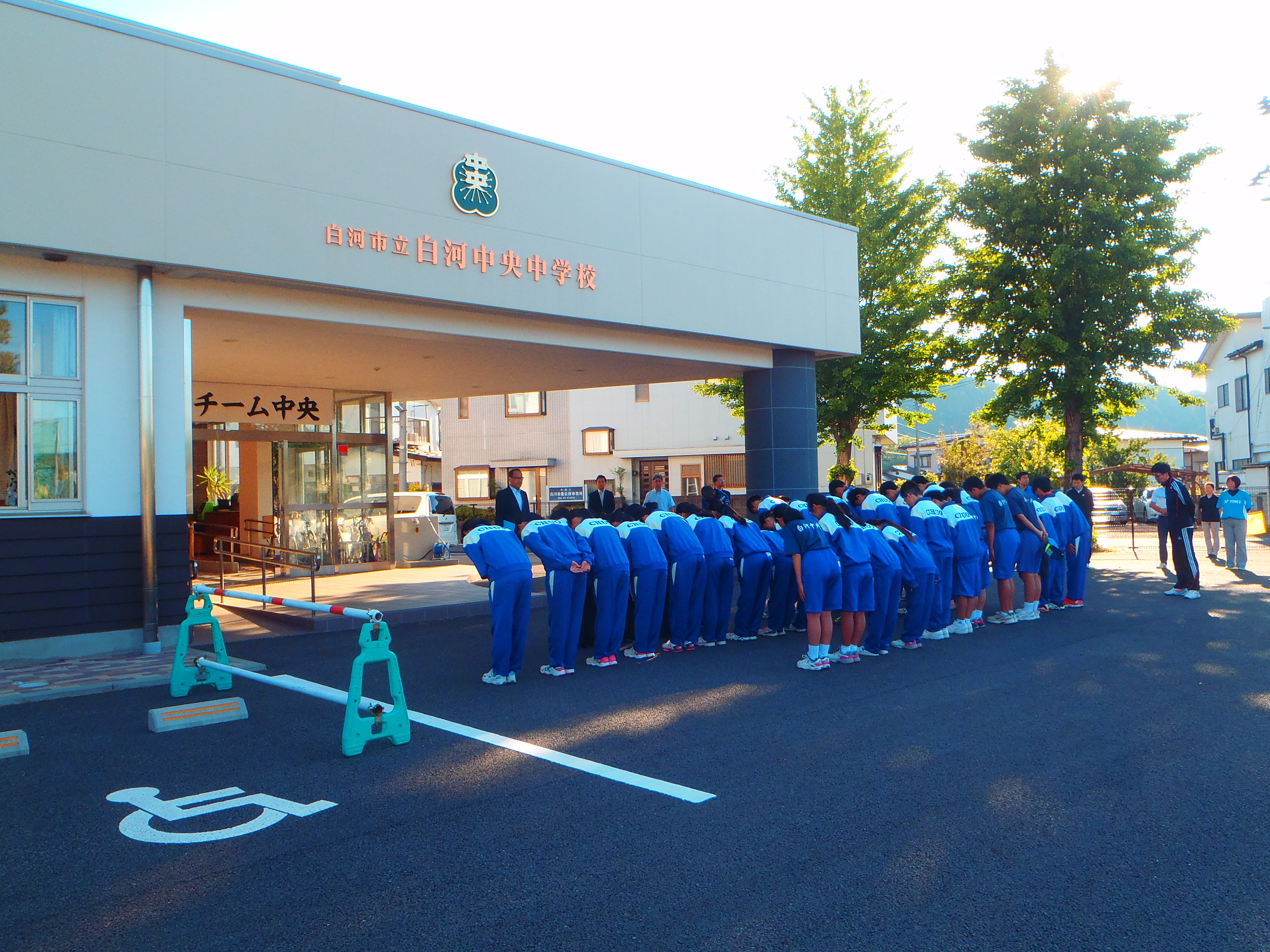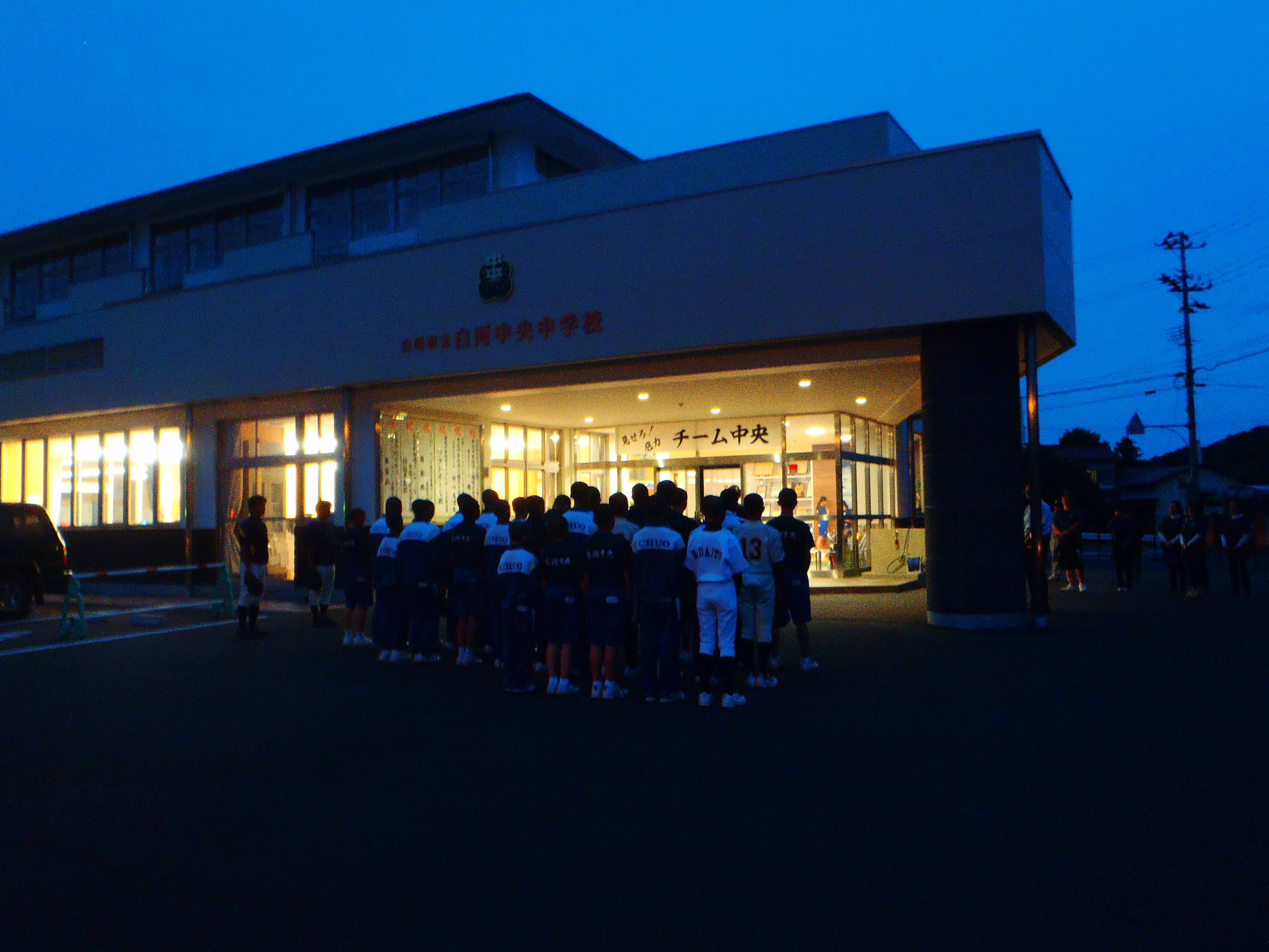 先ほど熱戦を繰り広げた野球部が帰校し、中体連初日が無事終了いたしました。