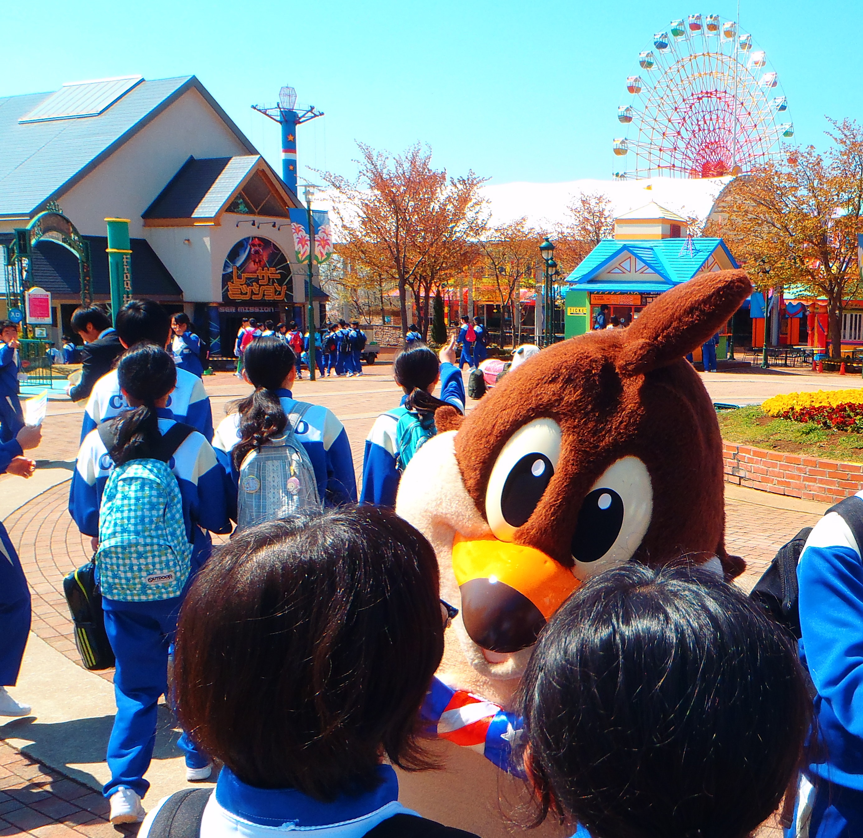 前日の雨がうそのように太陽が輝く中、生徒たちは班別に様々なアトラクションに乗ったり、お昼を一緒に食べたり、親交を深めていました。