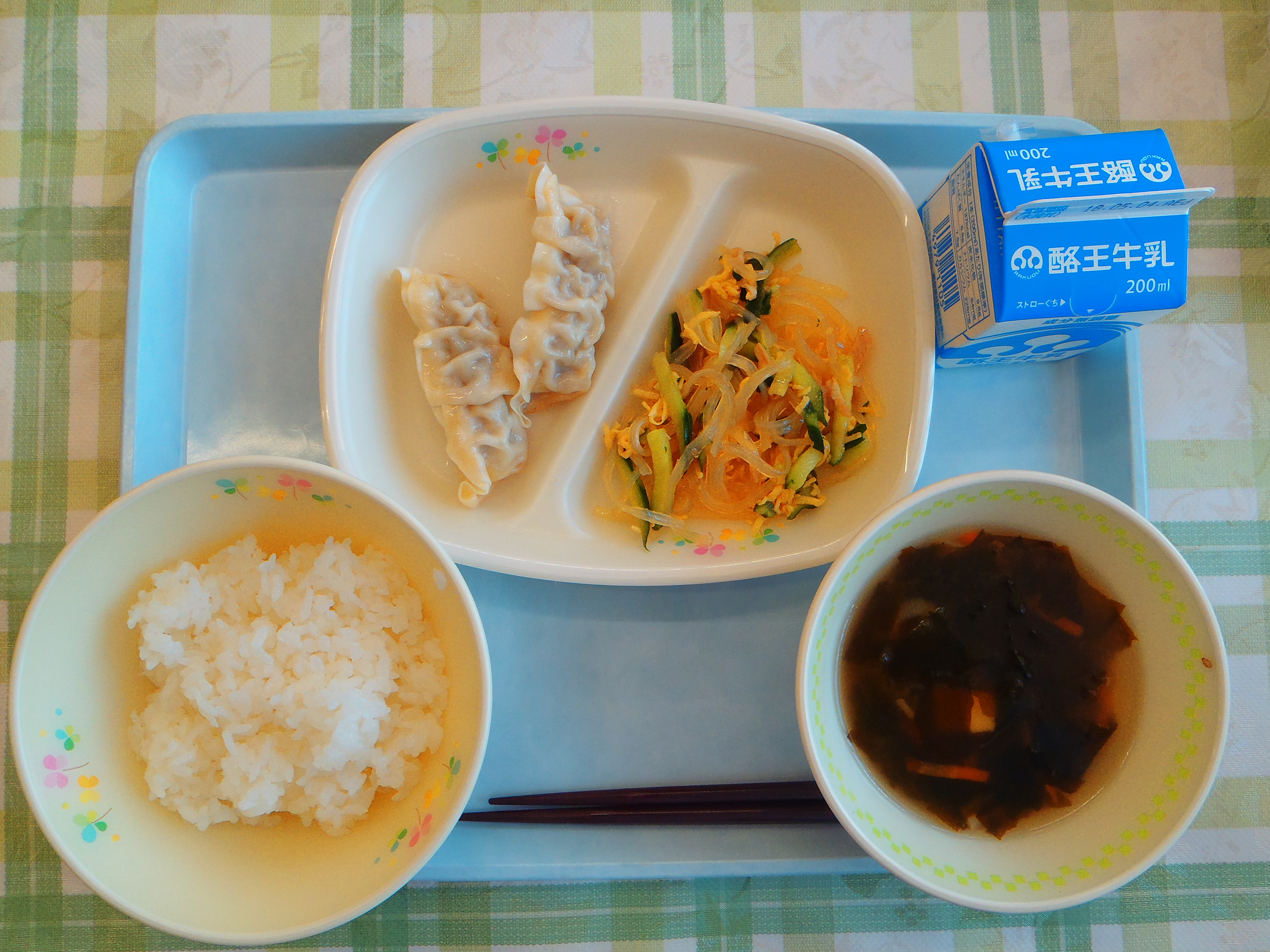 ごはん わかめスープ バンサンスー ギョウザ(2コ)牛乳