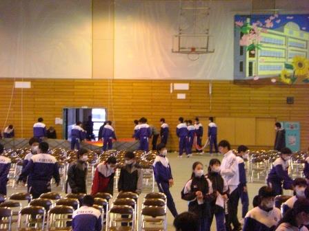 また、放課後には在校生達による会場作成と清掃が行われ、大変立派な会場が完成しました