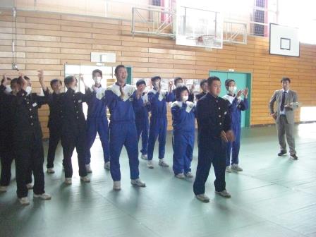 今日は、応援団長引き継ぎ式があり、3年生の応援団長から2年生の応援団長へ鉢巻きが託され、エールが送られました