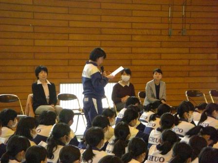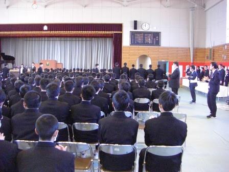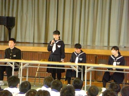 主に先輩方からは、その高校への志願の動機、将来の夢、進路決定までの経緯、勉強時間や勉強方法、部活動での取り組み方、受験アドバイスやメッセージについての話があり、来年と再来年に受験を控えている多くの生徒達は、真剣の先輩方の話を聞いていました