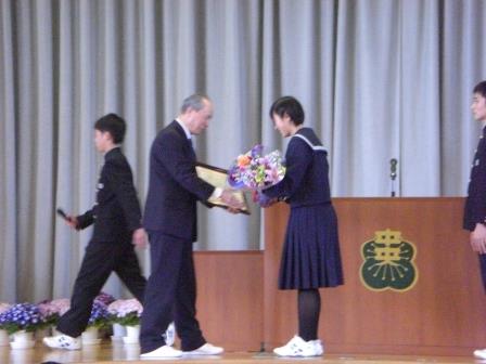 そして、予行の後には全校生徒からの感謝状と花束が代表生徒より、感謝の気持ち、そして校長先生がみんな大好きですという言葉を添えて贈られました