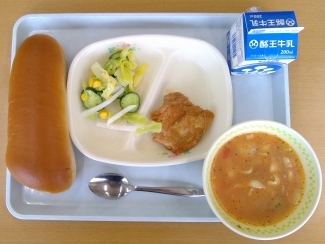 黒糖パン 牛乳 タンドリーチキン フレンチサラダ ミネストローネ