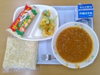 ミートソーススパゲティ 牛乳 コールスローサラダ クリスマスデザート