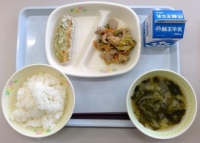 ごはん 牛乳 笹かまの磯部揚げ 厚揚げと豚肉のみそ炒め 青菜のみそ汁