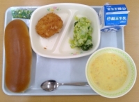 黒糖パン 牛乳 コロッケ パックソース フレンチサラダ コーンポタージュ