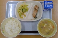 ごはん 牛乳 サケの三昧焼き 和風サラダ 豚汁