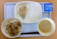 五色ごはん 牛乳 ごぼうサラダ きのこけんちん汁 りんご