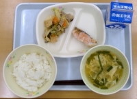 ごはん 牛乳 サケのみそマヨ焼き ひじきの炒め煮 青菜のみそ汁