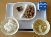 豚丼 牛乳 ごぼうサラダ かき玉汁