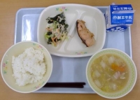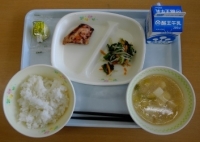 ごはん 牛乳 サケのねぎみそ焼き わかめとツナの和え物 いも団子汁