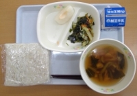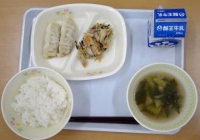 ごはん 牛乳 ギョウザ 五目ビーフン 中華スープ