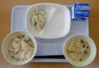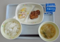 ごはん 牛乳 チキン竜田揚げ ツナサラダ 具だくさん汁