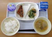 ごはん 牛乳 鶏肉のしょうが焼き 大豆五目煮 青菜のみそ汁