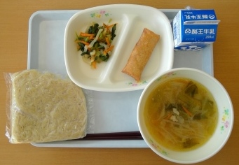 五目タンメン 牛乳 春巻き 小松菜のナムル