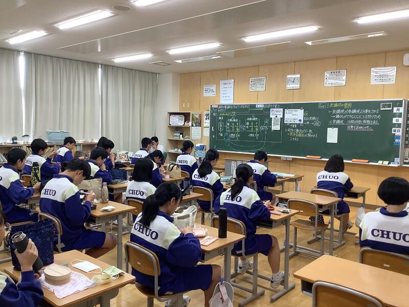 そして、今日は食育・健康デーということで、お弁当持参日でした。生徒の皆さんは、お弁当作りに協力したでしょうか。ぜひ、これからもお家の人に感謝の気持ちを持ち、積極的に家事の手伝いをしていきましょう!朝早くからお弁当の準備をして頂きありがとうございました。