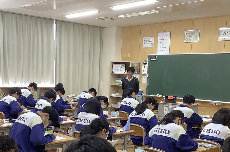 現在、中央中ではインフルエンザが流行しています。それに伴い、明日からの3連休は大会がある部活動以外は活動停止となりました。生徒の皆さんは不必要な外出を控え、14、15日の期末テストに向けて学習を進めましょう!