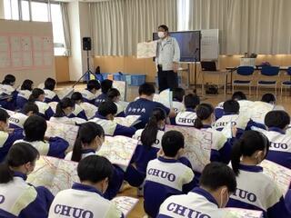 2年生の大半が、家庭に防災マップが配布されていることに気づいていませんでした。今回、写真の黄色いマップを1人1冊(2年生のみ)いただくことができましたので、ご家庭でも一緒に確認していただければと思います。
