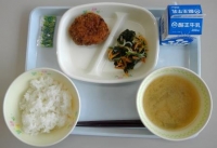 ごはん 牛乳 手作りメンチカツ パックソース おひたし 大根のみそ汁