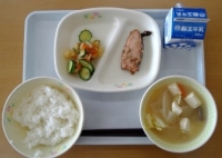 ごはん 牛乳 さけの三味焼き こんにゃくサラダ 豚汁