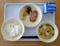 親子うどん 牛乳 野菜豆腐ナゲット こんにゃくサラダ