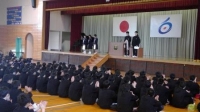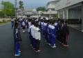 選手・補助役員の生徒達は、元気よくあいさつをし、競技上へ出発しました