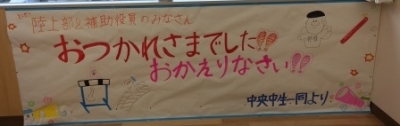 昨日の陸上大会の帰り、校舎にはこんな素敵な幕が飾られていました