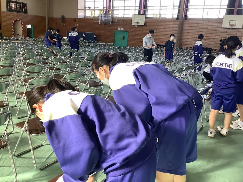 3週間、実習お世話になりました。生徒の元気で素敵なあいさつのおかげで、一日一日を明るい気持ちで過ごすことができました。この中央中での実習期間を通して学んだことを活かし、教員になれるよう頑張っていきたいと思います。