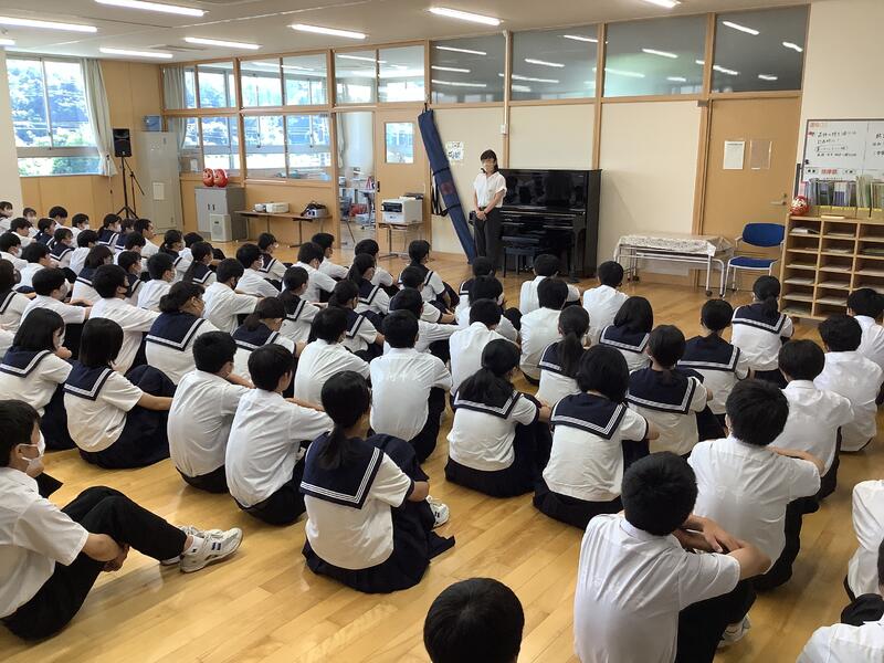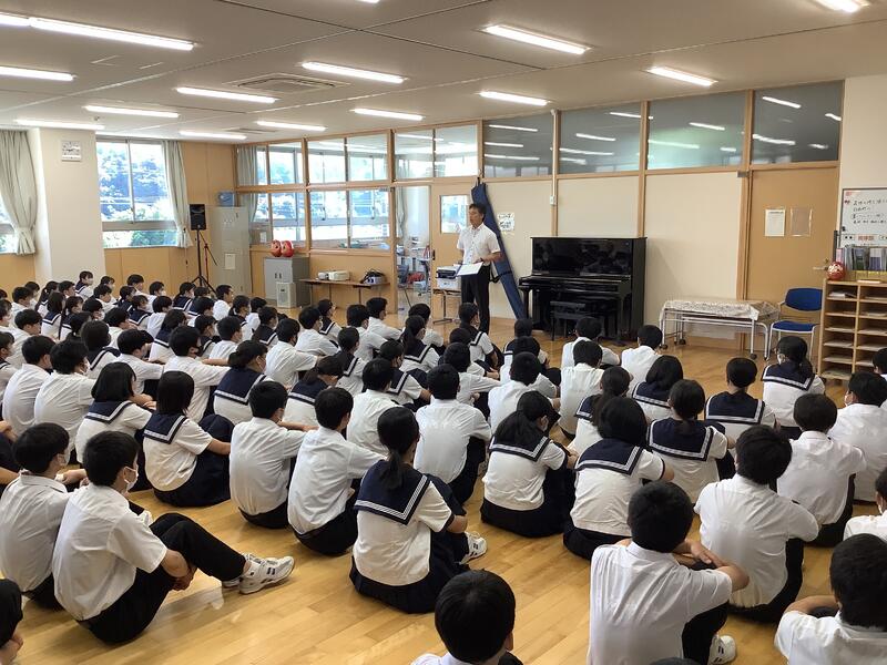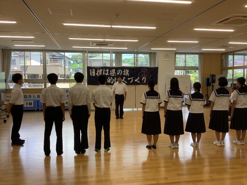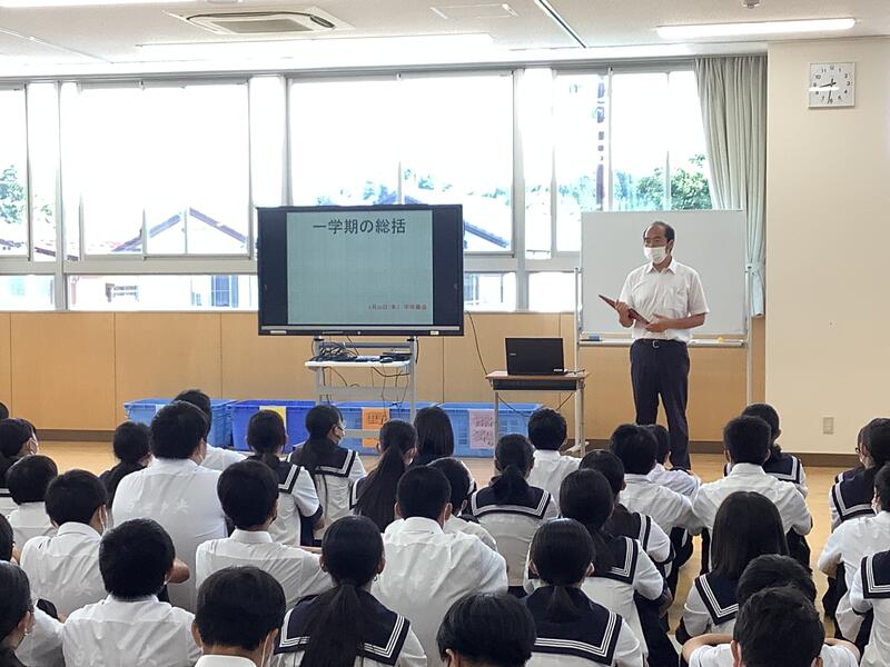 1学年主任から、1学期よく頑張ったということ、夏休みには勉強に部活動、お手伝いに取り組むことという話がありました。