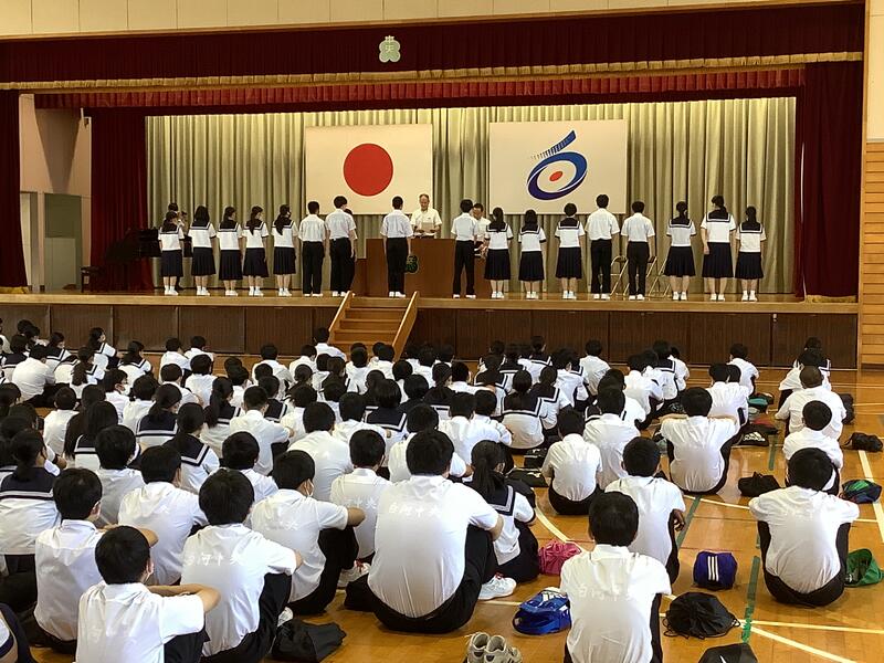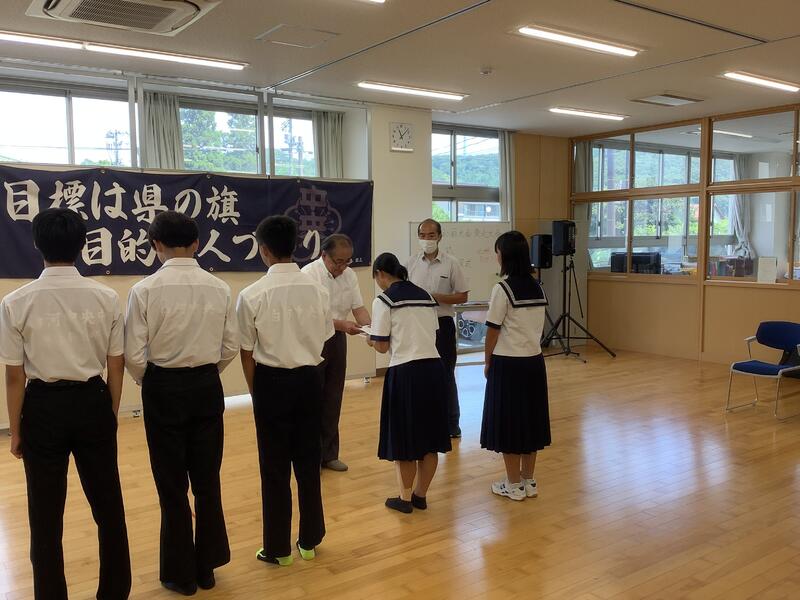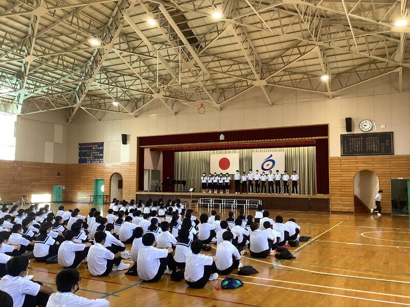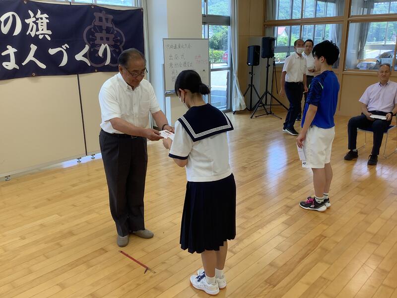 その後、体育館で、漢字コンテストや計算コンテスト、校内バレーボール大会などの表彰伝達が行われました。