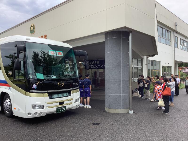 本日、男子バドミントン部の団体メンバーが、東北中学校体育大会に参加するために、岩手県北上市へ向けて出発しました。