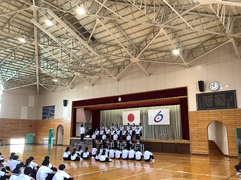 本日は、白河文化交流館コミネスで東西しらかわ音楽祭(合唱)が開催され、本校から特設声楽部が参加しました。それに伴い、午前中に出発式が行われました。