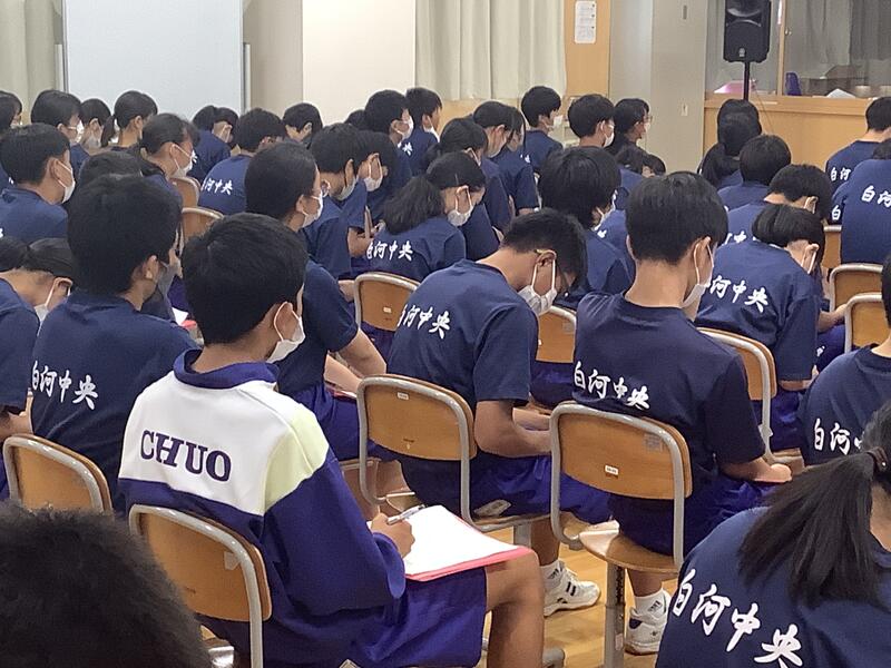 白河中央中学校はいじめ防止推進校に指定されており、生徒会役員の8名が参加しました。