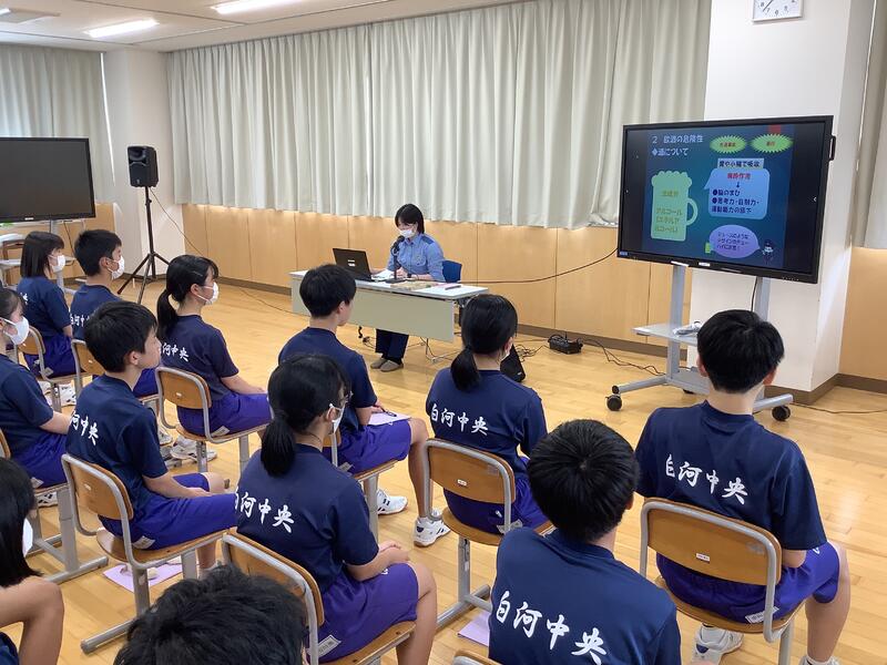 本日、3学年を対象に、白河警察署生活安全課深谷様を講師にお招きして、薬物乱用防止教室を行いました。