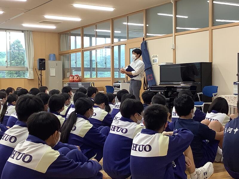 白河西ロータリークラブであり本校PTA会長の髙畠様と、県南分区幹事の諸橋様が本校に来てくださり、全校生徒へ直接話をしていただきました。