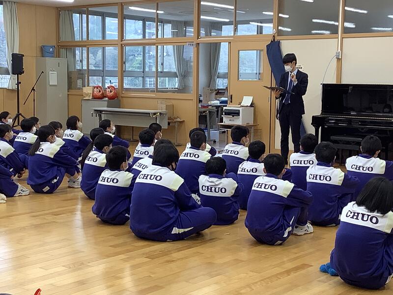 地震の避難訓練では、4分で避難を完了することができました。どんなときでも落ち着いて行動できるのが中央中生です‼️すばらしい取り組みでした。