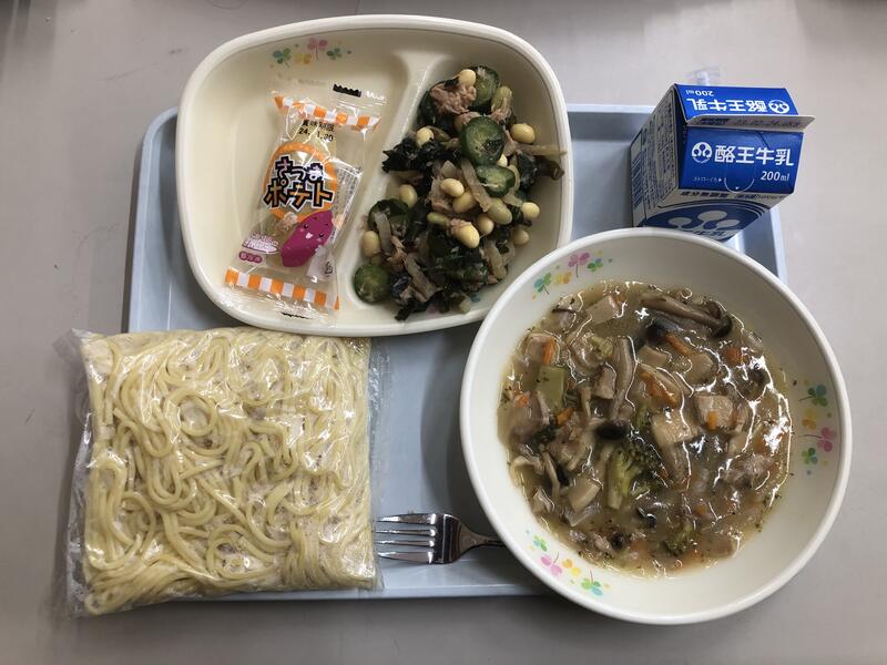 きのこスパゲティ 牛乳 豆まめサラダ さつまポテト