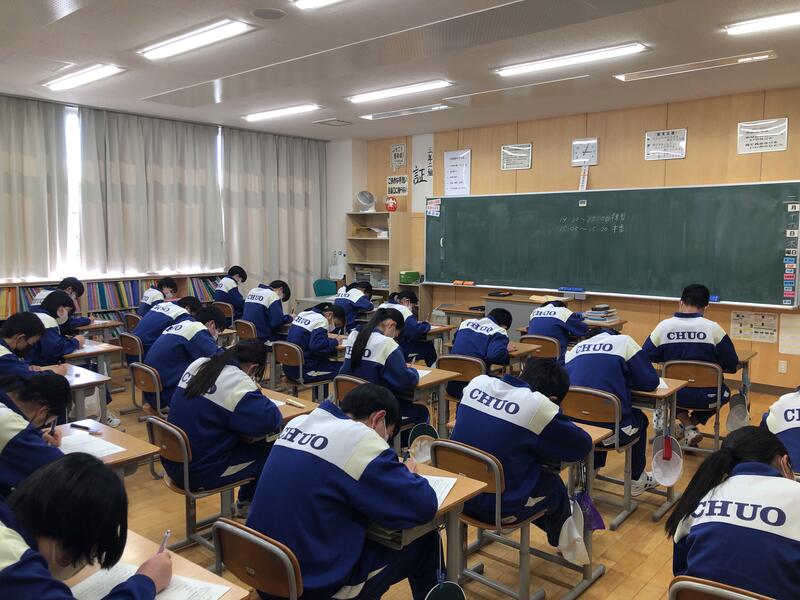 冬休みの宿題としてプリントに取り組んだり、朝学での小テストに臨んだりと、約2ヶ月間対策に取り組んできました。それぞれ最後の1秒まで見直しをし、テストを終えることができたようです!全校生の皆さん、お疲れ様でした!