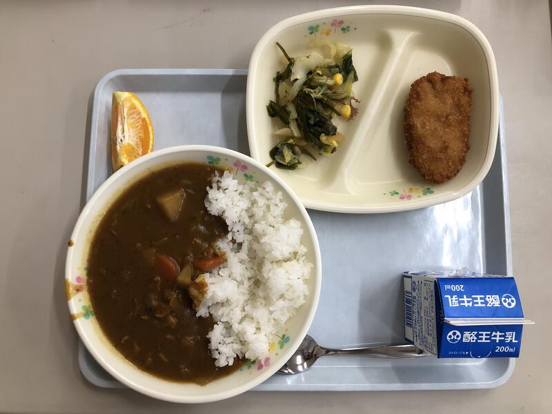 カレーライス 牛乳 県産豚モモカツ 海藻サラダ しらぬい