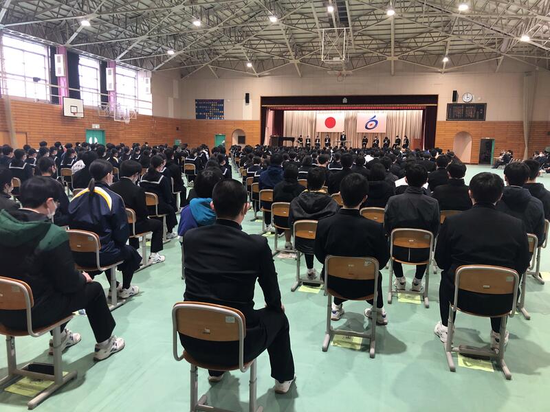 3年生は卒業式までの登校日が今日で残り18日となりました。授業などのあいさつで姿勢や礼のタイミングなどを合わせる練習をしており、その成果が今日の練習では見られました。