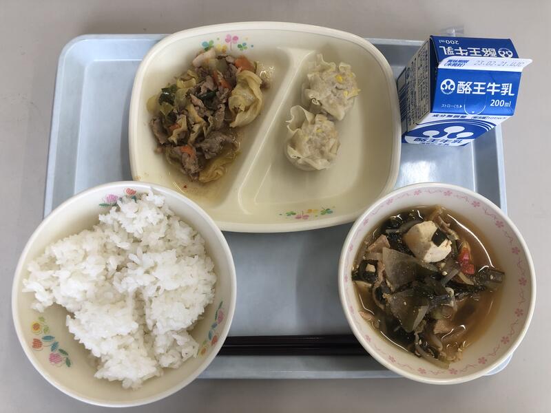 ごはん 牛乳 コーンシューマイ ホイコーロー 具だくさんキムチチゲスープ