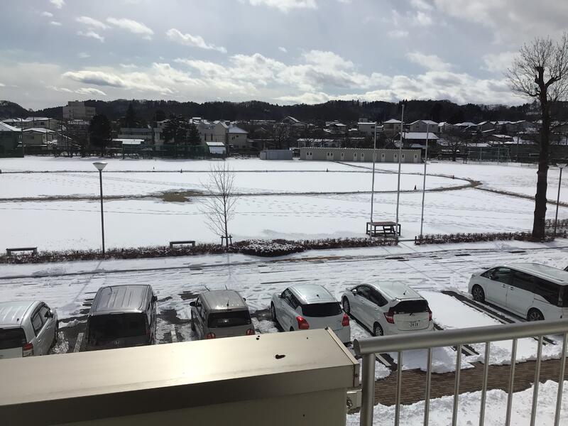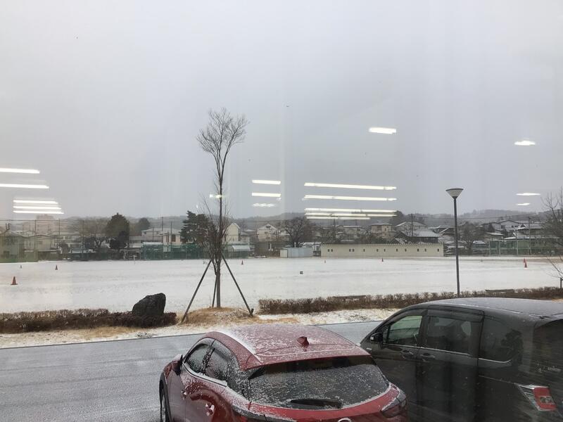 昨日の寒波で、校庭がこのような状態になってしまいました。すでに雪が溶けている部分もありますが、帰りの時間には凍りついて危険な状態になりそうです。怪我や事故のないように気をつけるよう話をしました。
