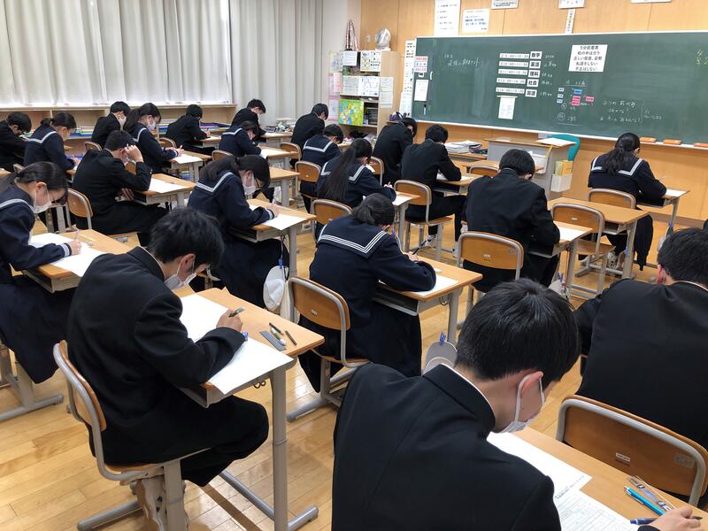 今回の実力テストは、高校入試を想定した内容ということもあり、3年生はいつも以上に真剣に取り組んでいました。