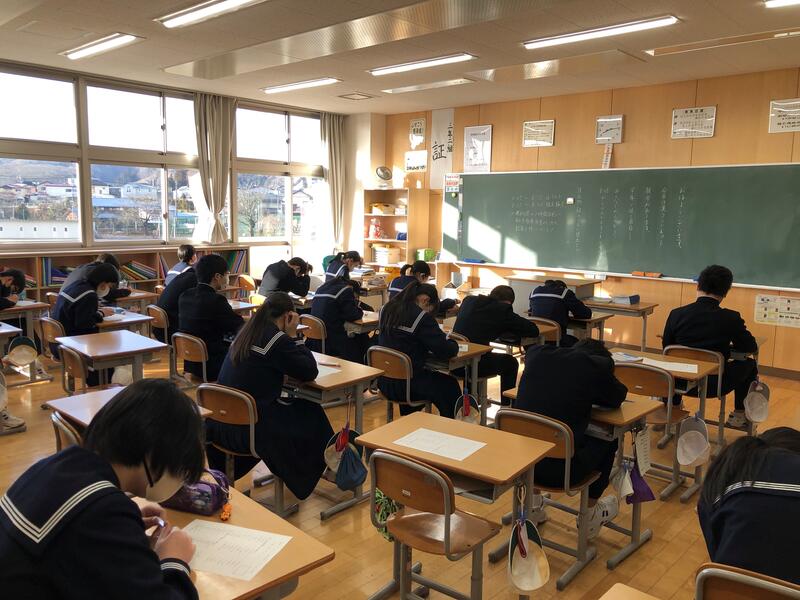 今日は、1・2年生は白河市学力調査を、3年生は第3学期期末テストを行いました。