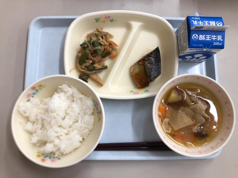 ごはん 牛乳 サバの照り焼き 切干大根の炒め煮 具だくさん豚汁